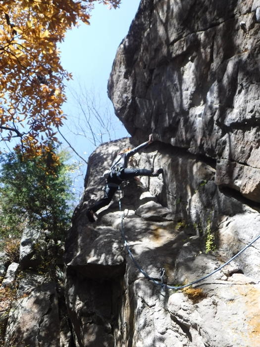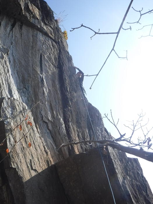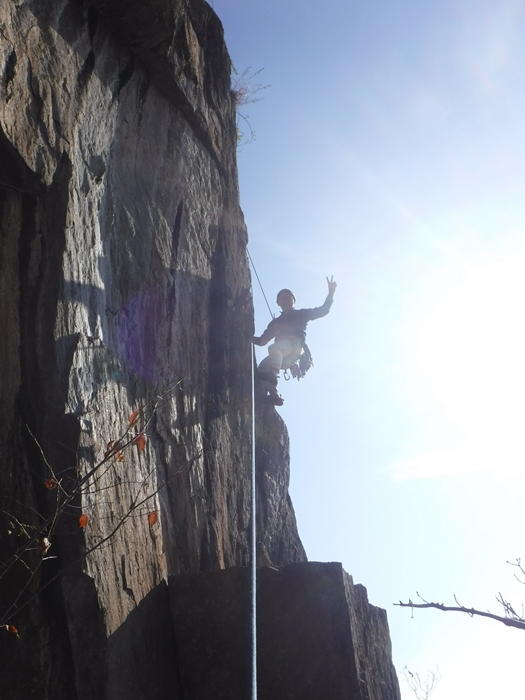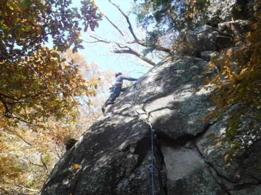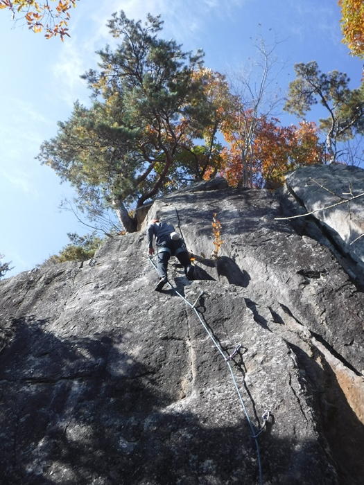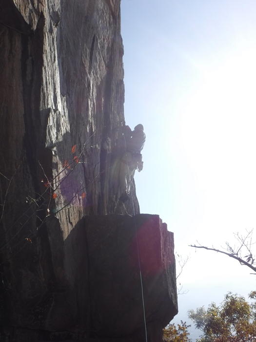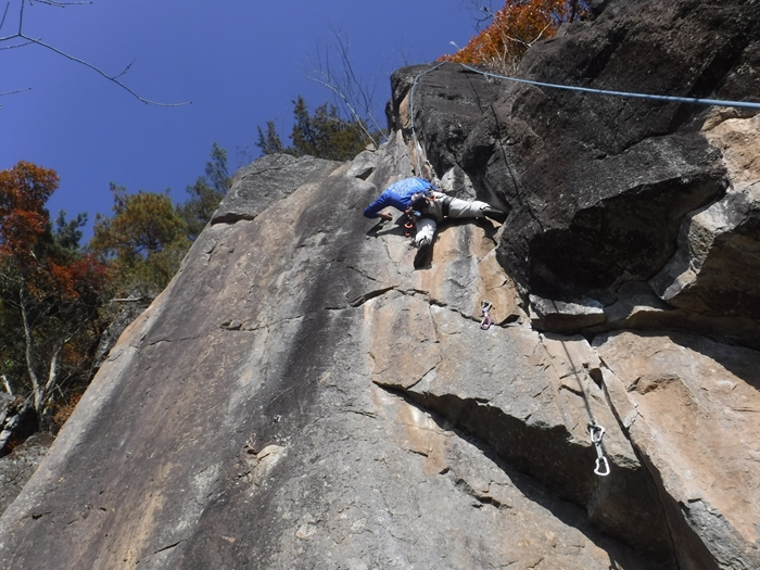 午後は、のろし台エリアに移動、兜岩最高グレードの5.13aを見物しクライミング